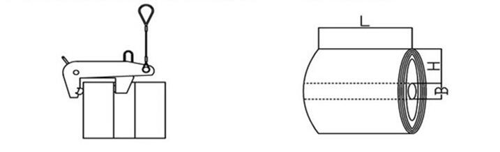 注:立式卷鋼吊具可根據(jù)用戶需要類型確定,用戶需提高卷鋼的噸數(shù)、H、L、B參數(shù),我公司定制生產(chǎn)。